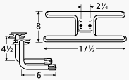 - 17-1/4 by 8-Inch stainless steel h twin burner with 2-1/4-Inches offset gas inlets with 6 by 4-1/2-Inch venturis